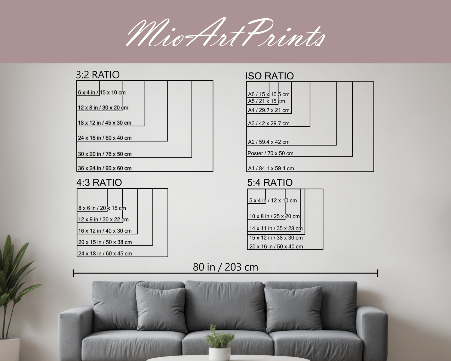 12 x 18 in = 30 x 45 cm, 16 x 24 in = 40 x 60 cm
